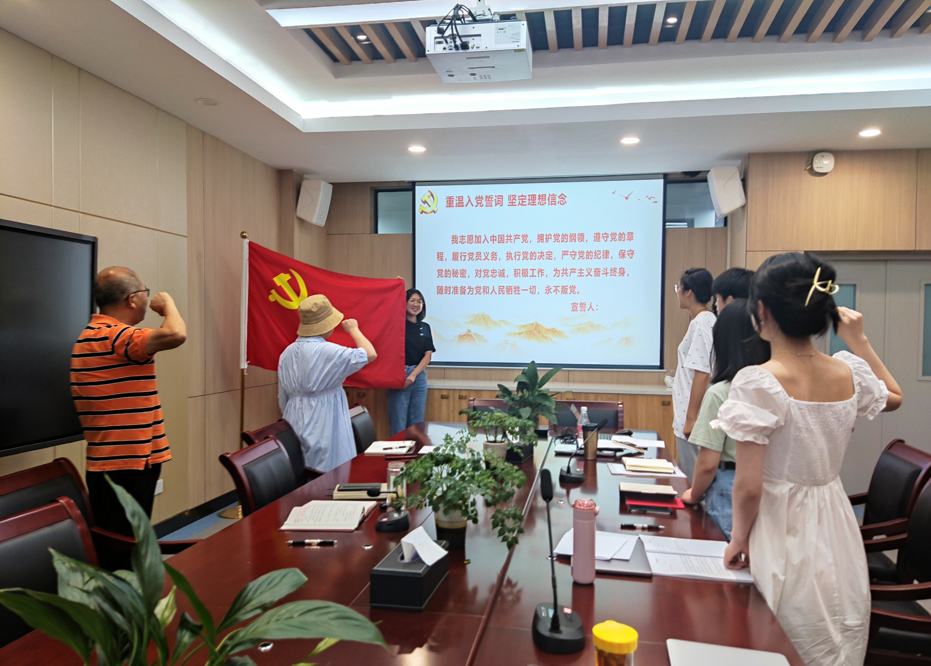 会上,支部书记余艳阳同志宣读组织部门批准谢纯同志入党的通知书,并代表支部欢迎新党员的加入。正值党的生日7月,支部全体党员一起重温入党誓词,进一步坚定作为共产党员的初心使命和理想信念。