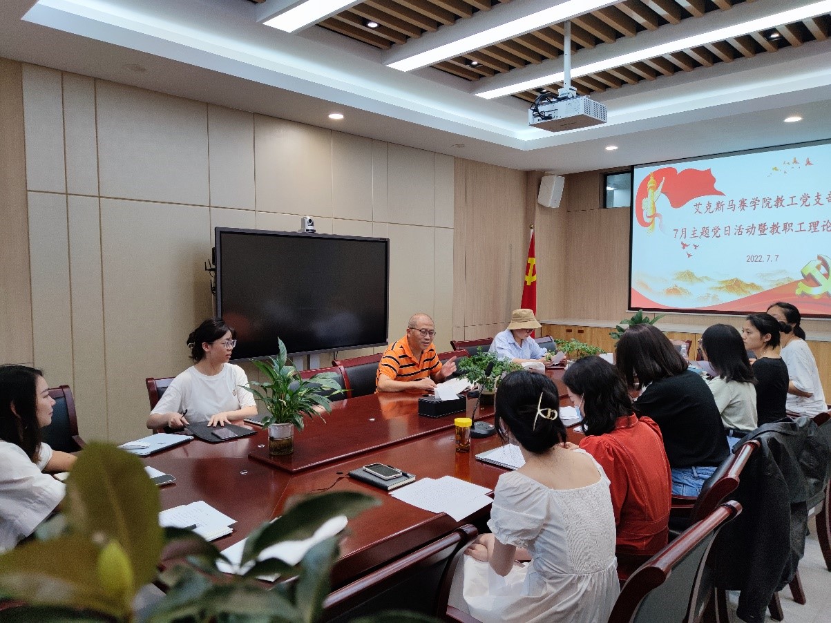 7月7日下午5点,成人在线 教工党支部在化生大楼S304会议室组织主题党日活动暨教职工集中理论学习,成人在线 副院长袁国华及成人在线 全体教职工参加,会议由支部副书记许欣妍同志主持。