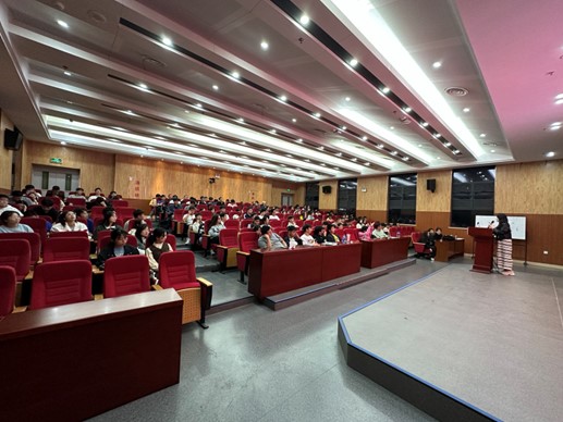 大会第三项,23级年级生活与心理委员徐佳以面对大学的落差和精神内耗如何调适为主题对同学们进行了心理疏导,激励同学们对大学生活始终有目标和期待。