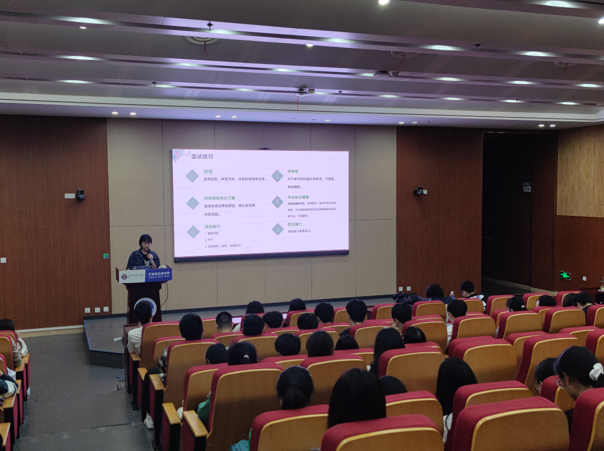 报告会邀请优秀的学长学姐进行成果展示及经验分享。生物技术专业的郑诗琦同学从学习规划、保研准备及参加夏令营等几个方面分享了她的保研经验,向同学们介绍了保研信息的平台,告诉大家调整心态,早做规划。