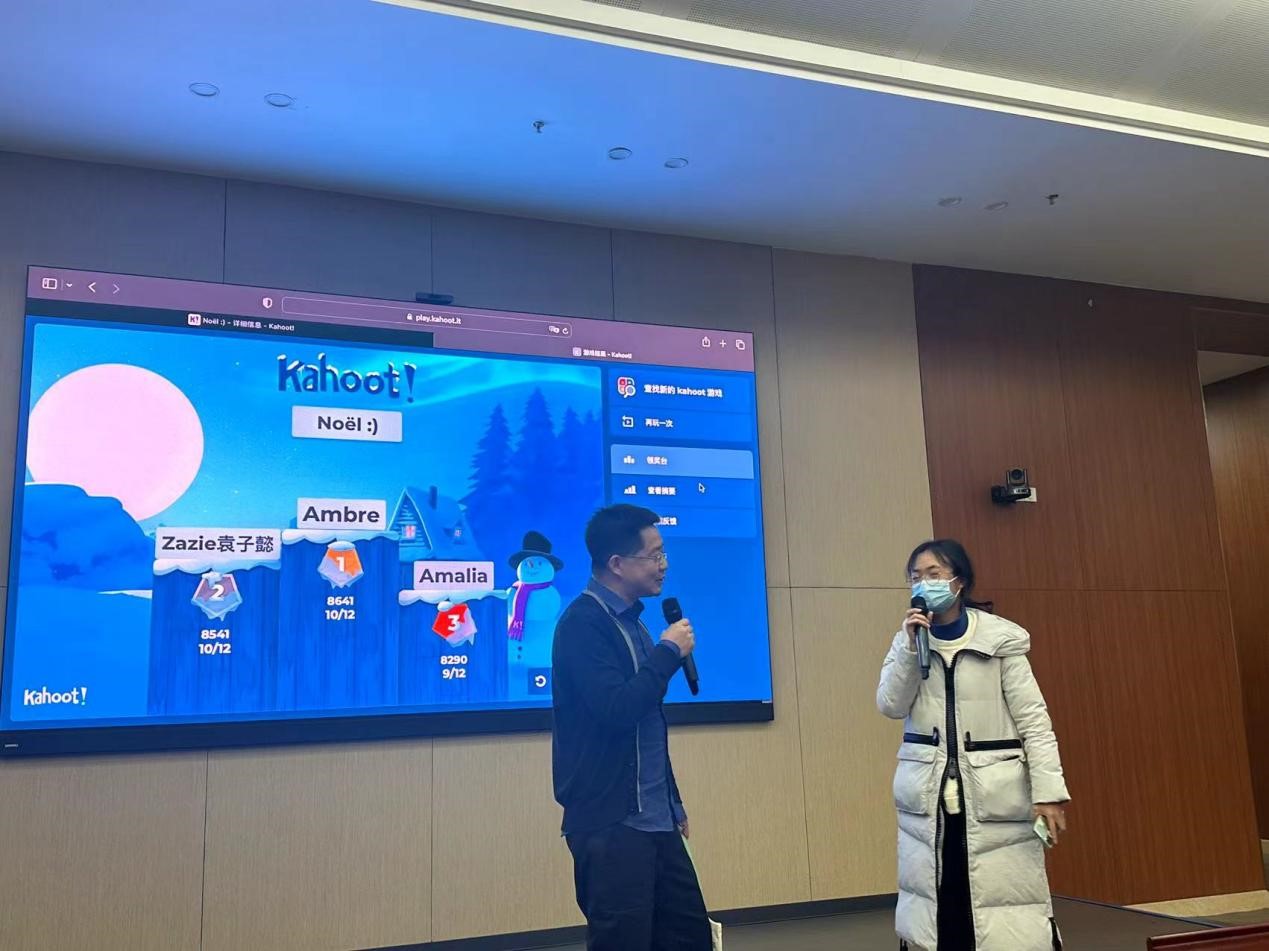最后,讲座线上小游戏中获得前三名的同学获得了来自法盟老师准备的精美小礼物。同时,三位同学上台与法盟老师进行了法语对话交流,将自己学到的法语知识运用到实践中。