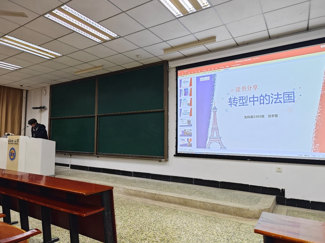 读书分享会开展以来,同学们积极参加,从《沉默的巡游》、《萤火虫小巷》、《活着》等小说,到《贺春》、《我与地坛》等散文集,到《再见,压力》、《转型中的法国》等社科类书籍,同学们分别围绕16本不同类型的书籍开展分享,通过好书共读,分享读书感悟。读书分享会上涌现出了许多才华横溢的分享者,有为文学作品写歌作曲的张泊宁同学、热心讲解心理学“五感冥想”知识的陈悦同学,真挚朗诵自己文学创作的李云帆同学,分享创作成果与学习收获。听众同学们在了解历史、扩展国际视野、享受文学与艺术的同时,也学习了不同领域的专业知识,提升了综合素养。