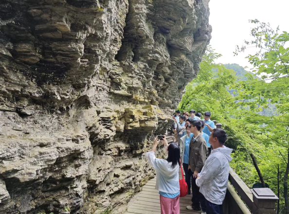 在神农架林区以险峻著称的燕子垭,实践队员们仿佛置身于一幅生动的生态画卷之中。他们在当地技术人员的带领下穿梭于岩壁之间,用双眼捕捉那些平时难以一见的岩间动物,在燕子洞幽暗的洞穴里观察林区独有物种—小型鸟类短嘴金丝燕 ,认识了解他们独特的声音定位法,通过一天的观察,队员们深感自然界的神奇与伟大。