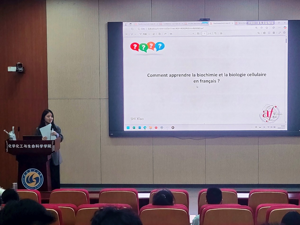 2025年3月23日18:00-20:00,成人在线 联合法语联盟,于化生楼报告厅举办"学术法语应用策略"主题讲座。本次活动特邀法盟教师石老师担任主讲,面向2023级、2022级生物技术、制药工程专业本科生,系统解析法语在专业学习中的实践路径,280余名学生参与。
