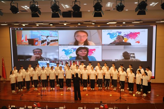 Enfin, le Chœur Fenghua de l'Institut WUT-AMU, qui fait partie des organisations culturelles, a interprété une performance chorale « Sur la montagne Taihang », avec un bon état d'esprit des élèves de l'Institut.