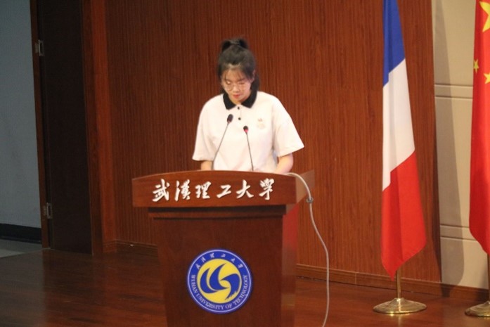 FU Yating, étudiante de la licence de promotion 2021, et LI Sutong, nouvelle étudiante de la promotion de 2022, ont pris la parole en français et en anglais en tant que représentantes des étudiants.