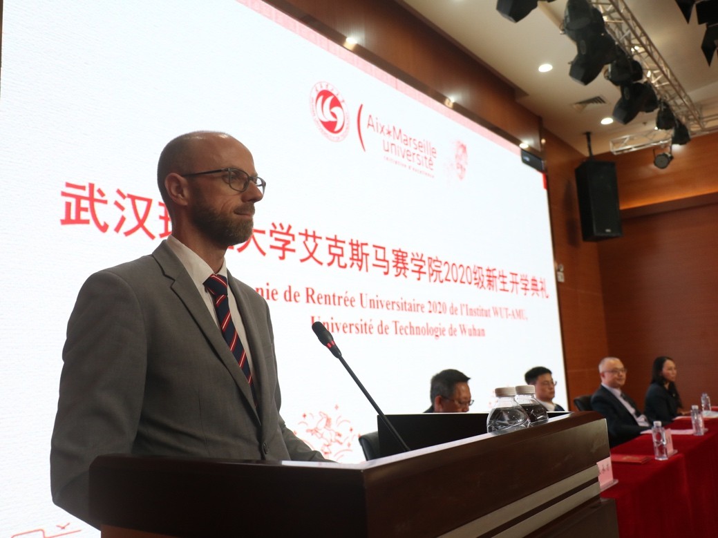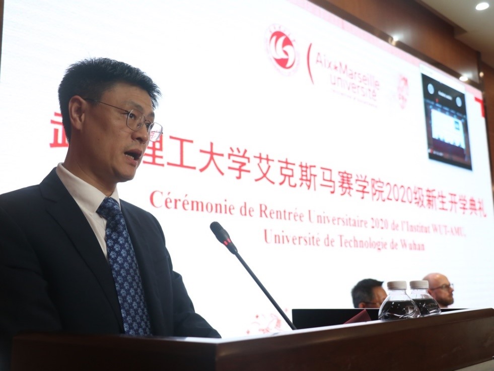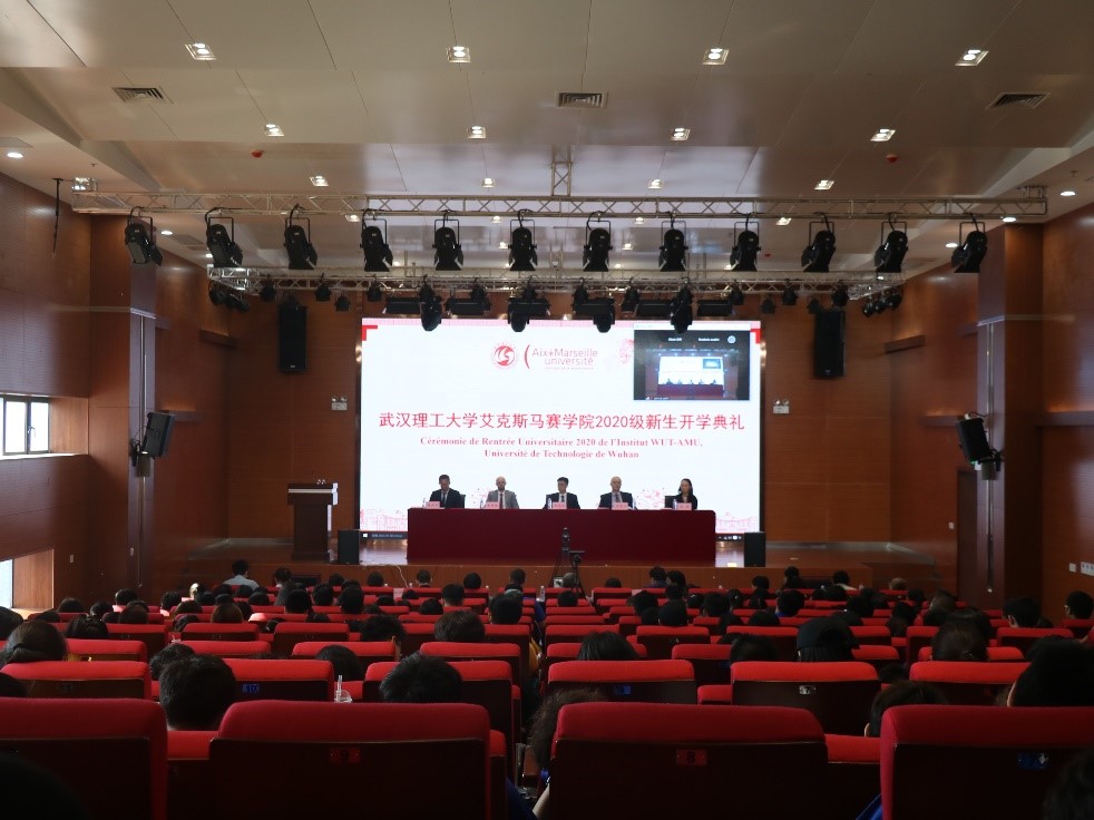 La Cérémonie de la 1ʳᵉ rentrée universitaire des étudiants de la promotion 2020 de l'Institut WUT-AMU a eu lieu le 30 septembre 2020, en présence du vice-président de la WUT, doyen et président de la commission académique de l'Institut WANG Fazhou, du directeur de l'école doctorale des sciences de la vie et de la santé d'AMU, Jean-Louis MEGE, de l'attaché de coopération scientifique et universitaire du Consulat général de France à Wuhan, Sebastien BEDE, de la directrice générale de la société français Transgene en Chine, MENG Xia, du chef d'entreprise HUMANWELL HEALTHCARE de Wuhan, DENG Xiafei, des responsables des départements et des facultés associés de la WUT, des enseignants-chercheurs et des nouveaux étudiants de la promotion de 2020.