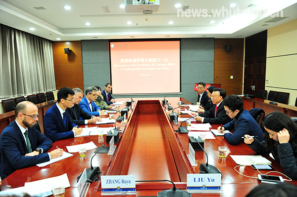 Le président Zhang Qingjie a exprimé sa joie d'accueillir Laurent Bili et sa délégation au campus de la WUT. Il a déclaré : « les échanges entre la Chine et la France sont fructueux dans le domaine de l'éducation et de la recherche scientifique. L'Institut WUT-AMU a eu sa première promotion d'étudiants en 2019, ce qui constitue un excellent résultat de la coopération éducative sino-française ». Il a exprimé le souhait de continuer à promouvoir et approfondir la coopération dans la recherche scientifique des universités des deux pays. La WUT soutiendra activement les coopérations amorcées entre enseignants-chercheurs français et chinois. Les enseignants-chercheurs et les experts français seront les bienvenus à la WUT pour mener des projets de coopération dans la recherche scientifique, afin de promouvoir les relations entre l'Industrie, l'Université et la Recherche dans différents domaines.