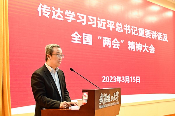 SUN Taobei, doyen de la Faculté de Chimie, Génie Chimiques et des Sciences de la vie et doyen exécutif chinois de l'Institut WUT-AMU, en tant que représentant de la 14ᵉ Assemblée populaire nationale (APN), a présenté son compte-rendu des réunions annuelles de l'APN et du Comité national de la CCPPC aux enseignants et aux étudiants de la WUT le mercredi 15 mars.