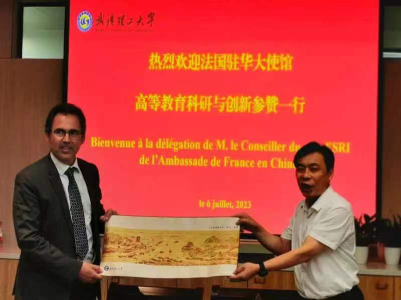 Le jeudi 6 juillet, l'Université de Technologie de Wuhan a accueilli le conseiller de l'Enseignement Supérieur, de la Recherche et de l'Innovation de l'Ambassade de France en Chine, Marc DAUMAS, et la délégation du Consulat général de France à Wuhan à l’Institut WUT-AMU. Les responsables du Service des relations internationales, de la faculté de Chimie, génie chimique et des sciences de la vie, et de l'Institut WUT-AMU ont participé à la réunion, qui a été présidée par XIANG Fan, directrice du Service des relations internationales. Les deux parties ont procédé à des échanges sur la coopération franco-chinoise de l'enseignement supérieur et de la recherche scientifique.