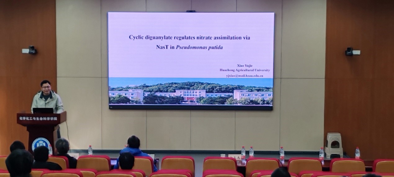 在本年度微生物学术大会暨2022级硕士生结课环节上,Pier-Luc TREMBLAY以“利用固态电子供体腐蚀自养微生物和二氧化碳生物转化”为题介绍了如何利用固态电子供体来促进自养微生物的生长和二氧化碳的转化;Yu-jie XIAO分享了“第二信使c-di-GMP通过受体NasT调节硝酸盐同化”为未来的农业和环境保护提供了新的思路;Sheng-wei HOU分享了团队在“响应宿主环境的代谢调控和致病因子:铜和氧化应激对沙门氏菌致病机制的关键作用” 方面的研究成果;Wei-hui WU报告聚焦在铜绿假单胞菌在宿主环境中调控代谢和致病因子的机制方面的研究进展;Romé VOULHOUX报告揭示了T2SS secretins的动力学和门控特性;Laurent AUSSEL的报告重点关注沙门氏菌对抗铜和氧化应激的双重调控机制。