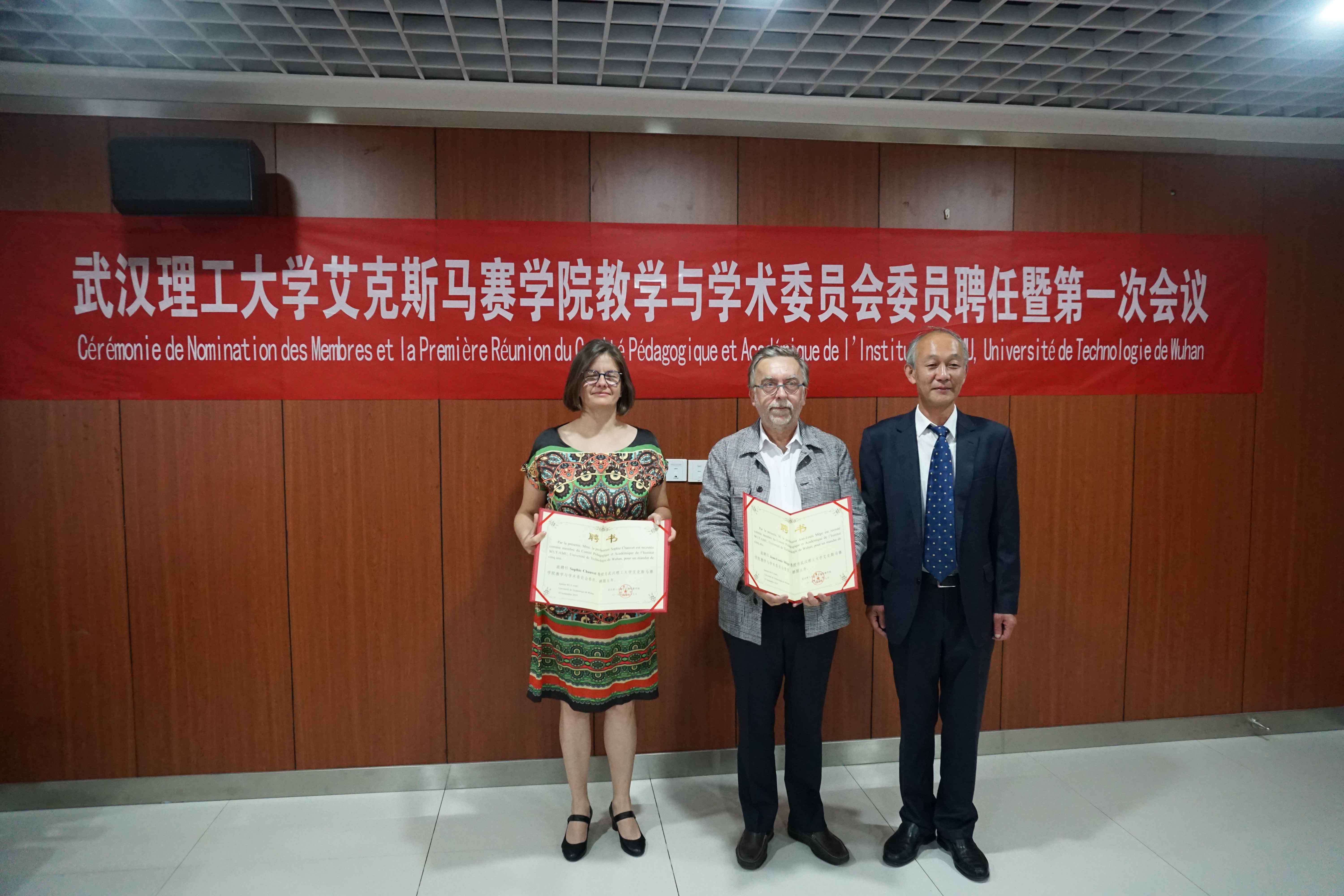 第一届教学与学术委员会由艾克斯马赛大学Jean-Louis Mège教授、Sophie Chauvet教授、Jean-Pierre Duneau教授、华大基因董事长杨焕明院士、法国梅里埃集团Transgene公司驻中国总代表孟夏女士、武汉人福药业有限责任公司董事长邓霞飞先生、成人在线 张甜教授、谢浩教授、郑铮教授、成人在线 院长康灿华教授、执行院长张承才教授、孙涛垒教授、史彬副院长组成。会上进行了第一届教学与学术委员委员聘任仪式。