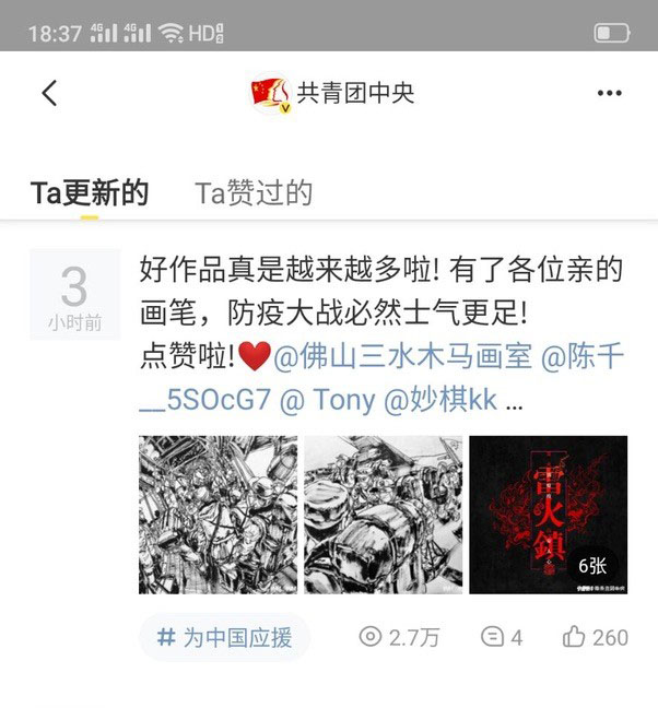 作品说明:被团中央媒体平台采纳发布。在中国传统道教中,雷神火神都有主灭瘟疫的司职。左侧火神镇毒除疫,右侧雷神驱瘟惩恶,“雷火镇”取新建的雷神山医院与火神山医院之名,借传统的文化底蕴,表达了抗击疫情必胜的信心和决心。