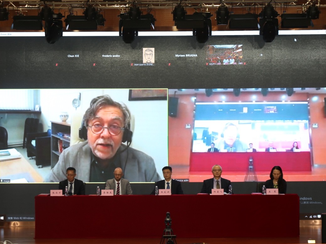 典礼上,王发洲校长致欢迎辞。王校长代表学校向远在法国在线参加典礼的艾克斯马赛大学校长梅毅主席及马赛大学各位教授、向专程来校的法国驻武汉总领事馆的教育合作专员李惟晟先生表示诚挚的感谢和热烈的欢迎。王发洲副校长表示,成人在线 的建立得益于中法双方政府的重视与支持,他呼吁马赛学子珍惜中法双方提供优质学习资源,学会适应,不惧挑战,勇于创新,成为中法文化交流的民间使者,用智慧为中法两国人民的友谊之桥建设贡献力量!