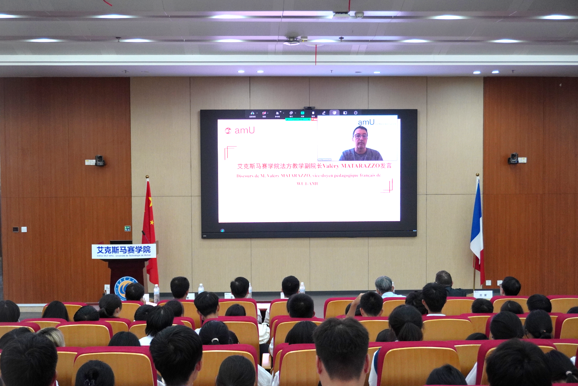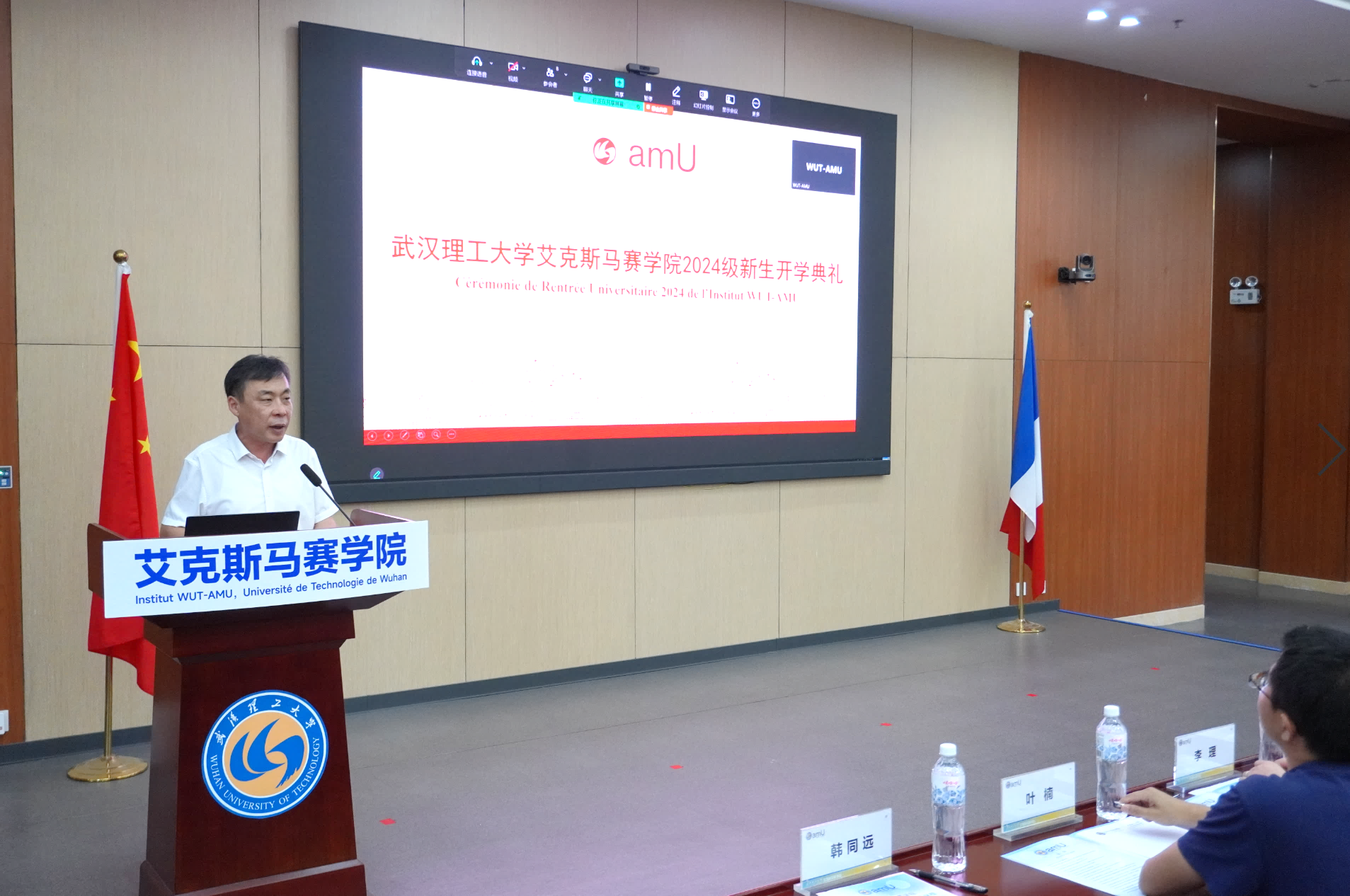 法方教学副院长瓦莱里·马塔拉佐向2024级新生致以问候与祝贺,同时向中法双方的教学团队表达感谢,鼓励大家积极参与赴法国的实习交流活动,提升个人的科研与实践能力,并勉励所有同学,在成人在线